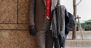 シャツの着こなし・コーディネート【ブラウンのスーツの…