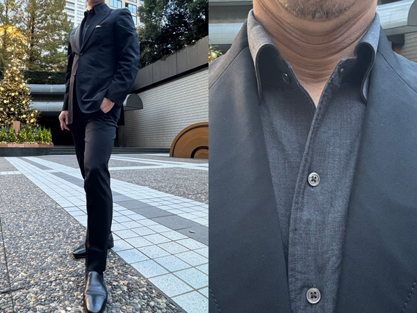 ①ノーネクタイの場合、クラシックなスーツにワイシャツの組み合わせはおすすめではない