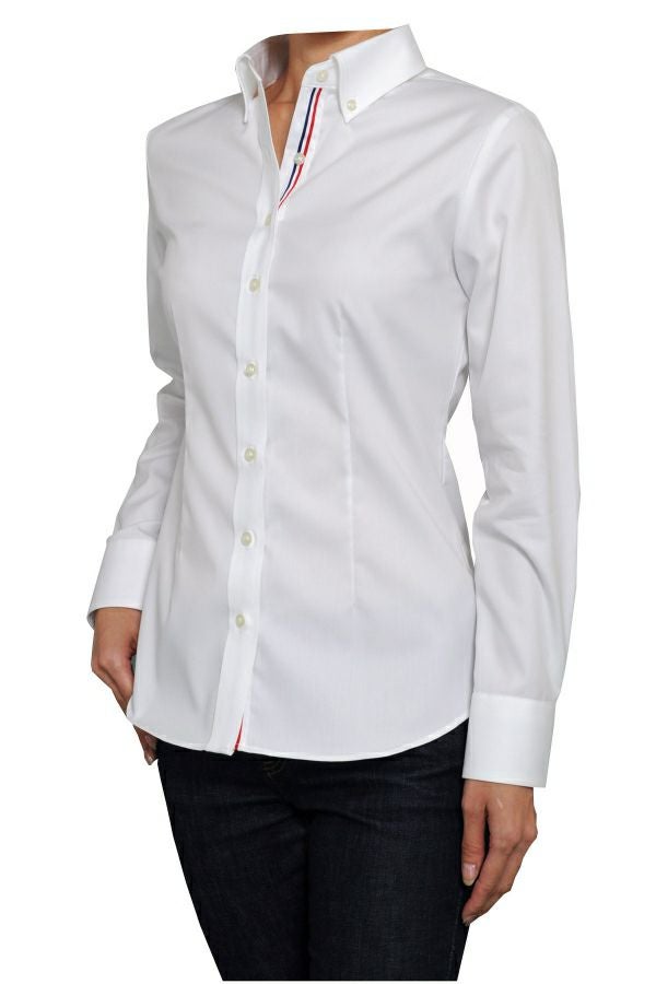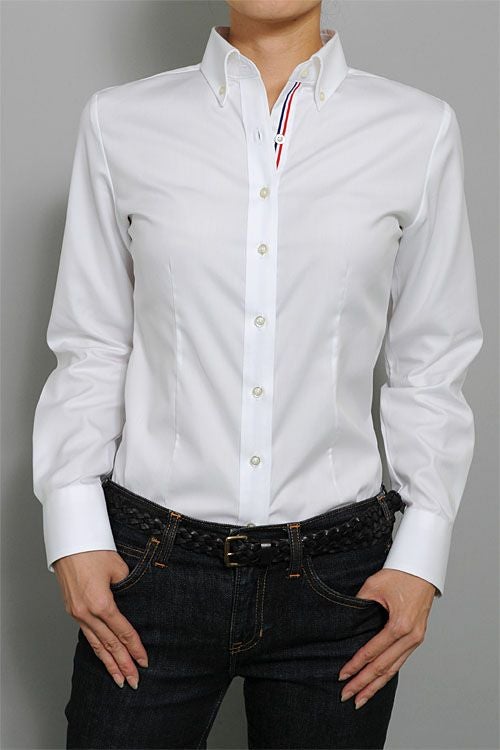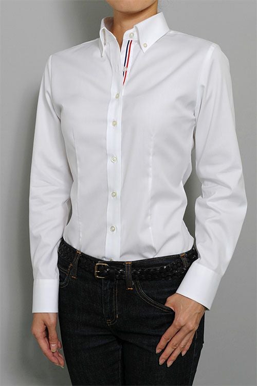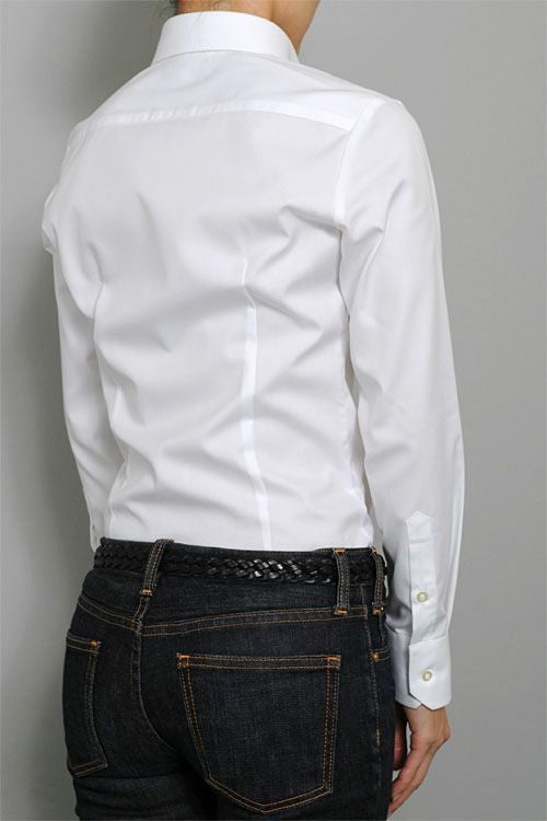 ozieのレディースシャツは、ドレス仕立て。凛としたきれいな衿元が大人の女性の魅力を惹きたてます。