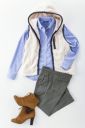 通常のオックスフォードより薄手、ブロードより厚手で、しっかりとした印象と上品さを併せ持ったドレッシーな生地です。