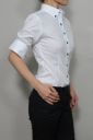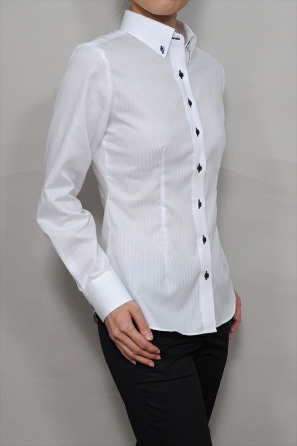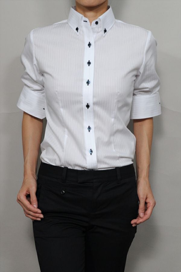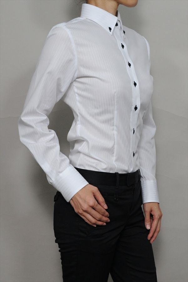 ボタンダウンとスリムなスタイルが、シャープな印象のレディースシャツです。