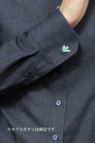 カジュアルな印象の強いデニム色ですが、メンズ仕立ての芯のある衿とカフスがきちんと感のあるカジュアルに。またスリムなスタイルが上品な雰囲気になります。