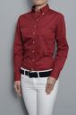 形態安定のシンプルな赤無地レディースボタンダウンシャツ