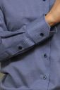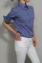 ブルーのストライプ柄にネイビーボタンがポイント。