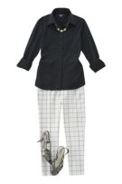 レディースシャツでも、袖元はすっきりしたまま、ダブルカフスのようにカフスボタンの上品なアクセントとオシャレを楽しむことが出来ます。