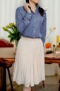 袖元が華やかなだけにシャツだけで十分な見栄えの着こなしになります。