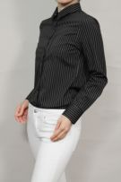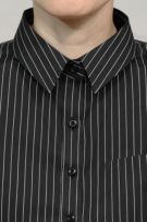 ピンストライプの黒シャツがマニッシュな雰囲気!