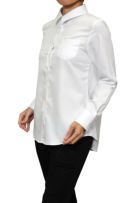 上品な光沢感のある細い斜めの織柄にサラッ!ツルッ!とした柔らかな白シャツ。
