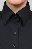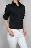 レディースシャツでも、袖元はすっきりしたまま、ダブルカフスのようにカフスボタンの上品なアクセントとオシャレを楽しむことが出来ます。