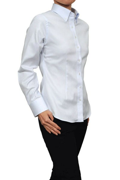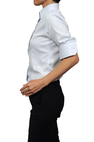 レディースシャツでも、カフスボタンの上品なアクセントとオシャレを楽しむことが出来ます。