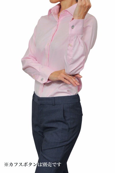 レディースシャツでも、袖元はすっきりしたまま、ダブルカフスのようにカフスボタンの上品なアクセントとオシャレを楽しむことが出来ます。