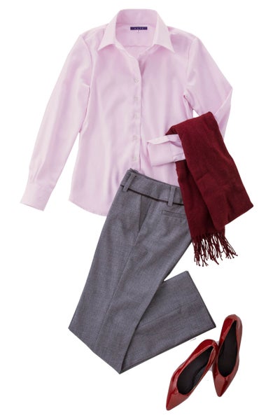 フェミニンな印象のピンクでシャツ1枚でも華やかに。