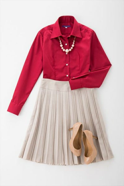 シンプル&ベーシックのスリムなスタイルに小ぶりな衿のワイドカラーレディースシャツ。