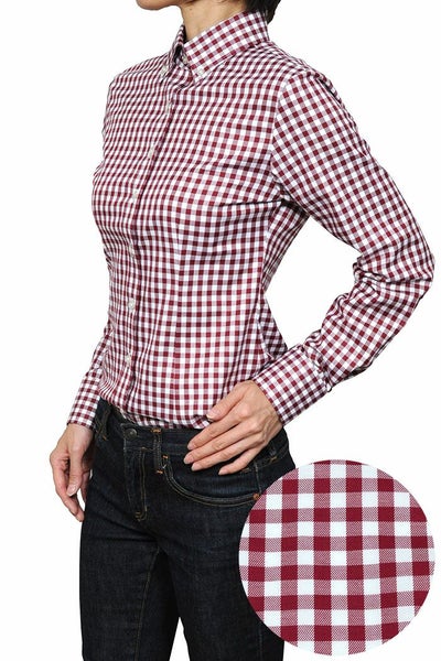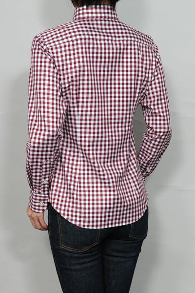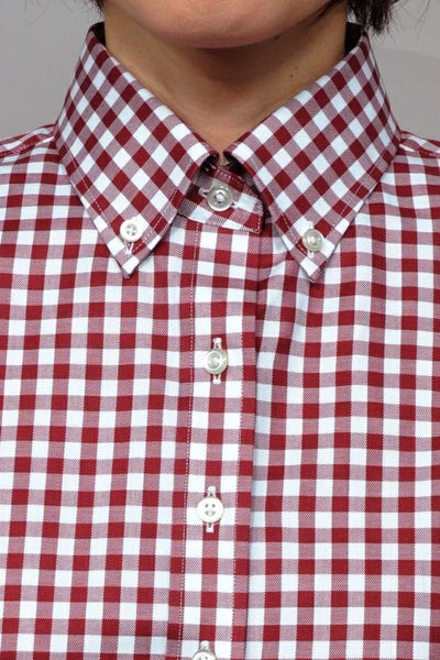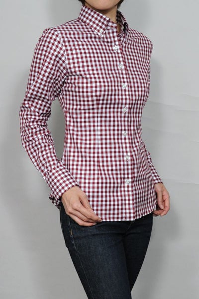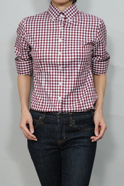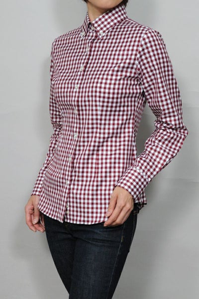 メンズ仕立てのギンガムチェック柄レディースボタンダウンシャツ。
