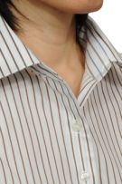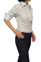 柔らかな雰囲気のブラウンのストライプシャツ!