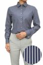 メリハリのある中に知的で落着きのある、甘くない大人スタイルのストライプ柄レディースシャツ。