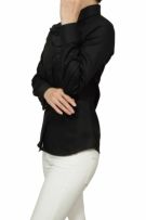 カフスボタンをして袖元を華やかに彩るメンズライクなレディースシャツ!