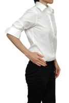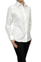 上質綿を使用した品の良いシンプルなレディース・ワイドカラーシャツ。