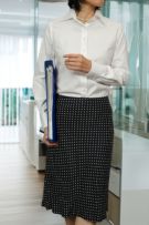 レディースシャツでも、カフスボタンの上品なアクセントとオシャレを楽しむことが出来ます。