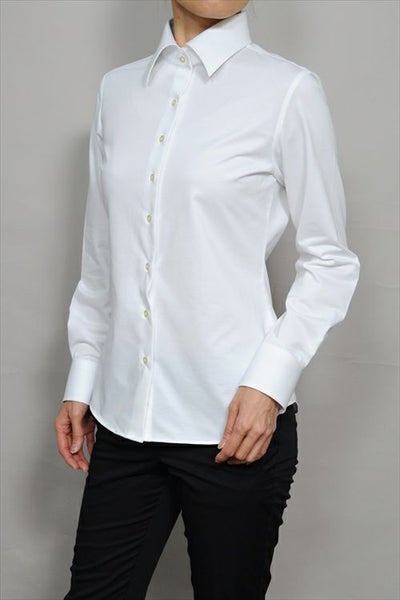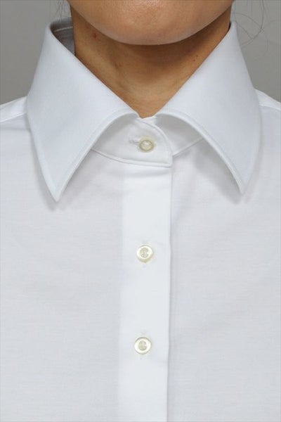 エレガントなメンズ仕立ての前開きタイプ/ビズポロ・長袖レディースニットシャツ