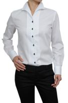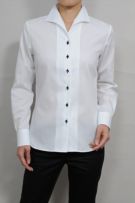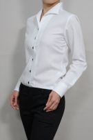 レディースシャツでも、袖元はすっきりしたまま、ダブルカフスのようにカフスボタンの上品なアクセントとオシャレを楽しむことが出来ます。