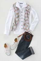 カラーボタンがアクセント。すっきり着こなせるイタリアンカラーシャツ