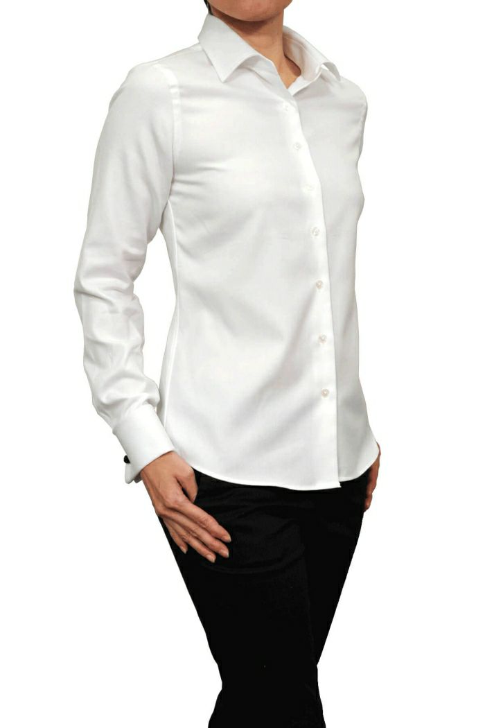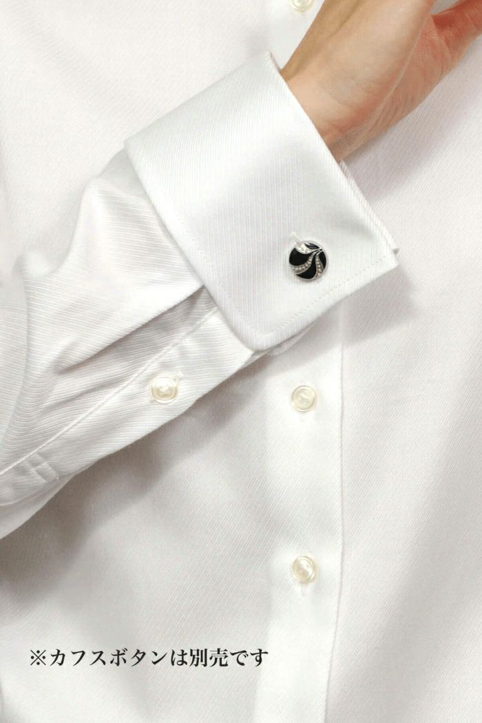 カフスボタンをする専用の本格派レディースダブルカフスシャツです。