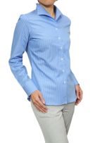 高級生地を使用したエレガントな衿が魅力的なレディース・イタリアンカラーシャツ。