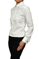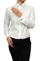 カフスボタンをする専用の本格派レディースダブルカフスシャツです。