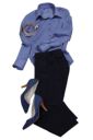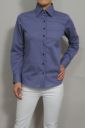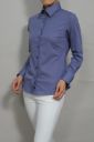 ブルーのストライプ柄にネイビーボタンがポイント。