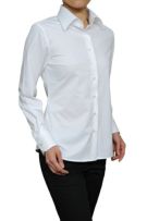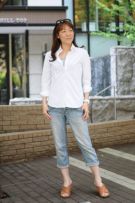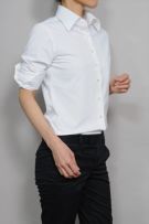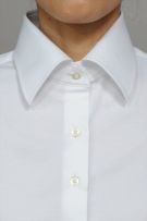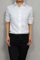 レディースシャツでも、袖元はすっきりしたまま、ダブルカフスのようにカフスボタンの上品なアクセントとオシャレを楽しむことが出来ます。