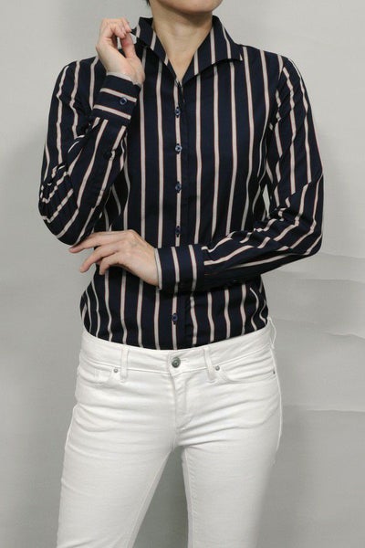 根強い人気のネイビーストライプ。