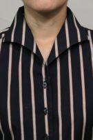 第一ボタンが無く、衿から胸元のボタンにかけて立体感のあるきれいなロールが出るのが特徴です。