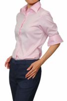 フェミニンな印象のピンクでシャツ1枚でも華やかに。