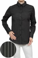 ピンストライプの黒シャツがマニッシュな雰囲気!