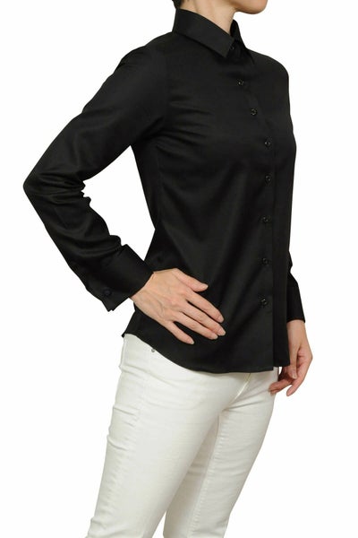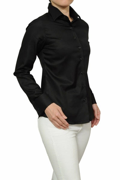 カフスボタンをする専用の本格派レディースダブルカフスシャツです。