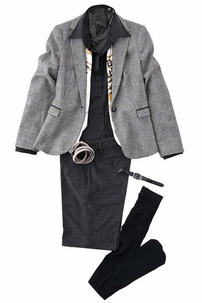 袖元が華やかなだけにシャツだけで十分な見栄えの着こなしになります。