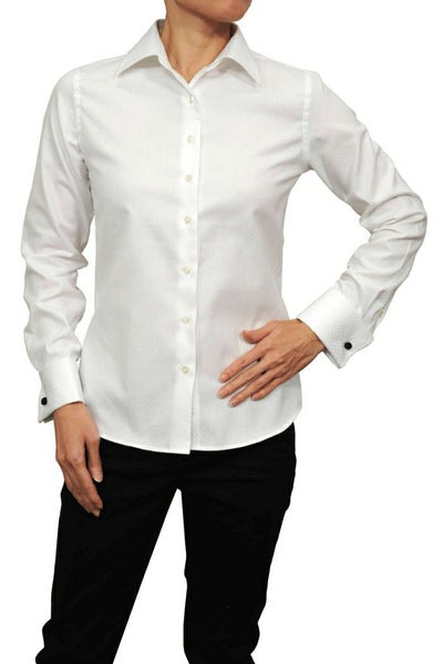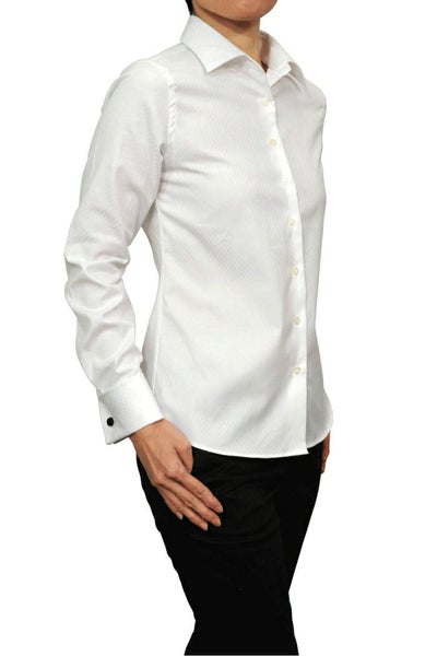 カフスボタンをする専用の本格派レディースダブルカフスシャツです。