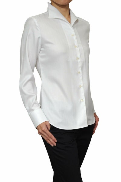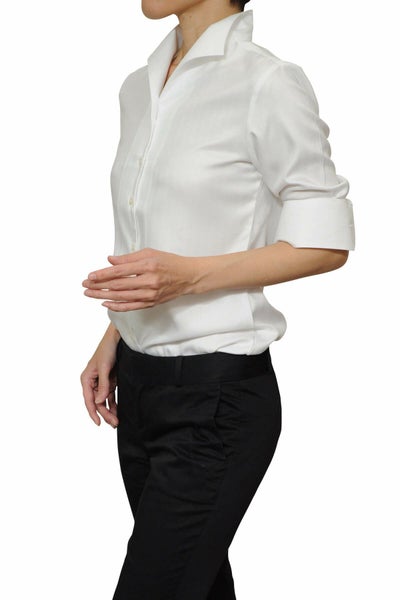 衿の曲線が美しいレディース・イタリアンカラーシャツ