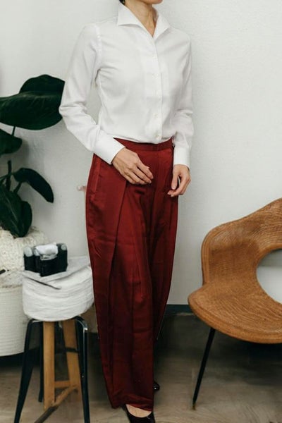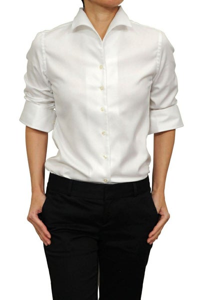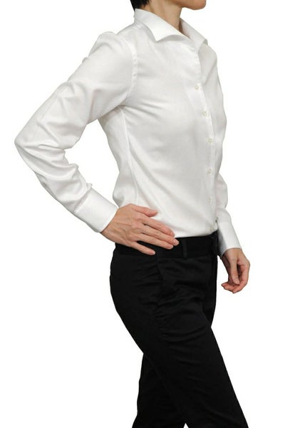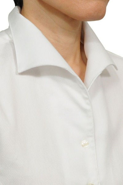 しっかりとした衿・カフスで、形を美しくキープできるメンズ仕立てのレディースシャツ。