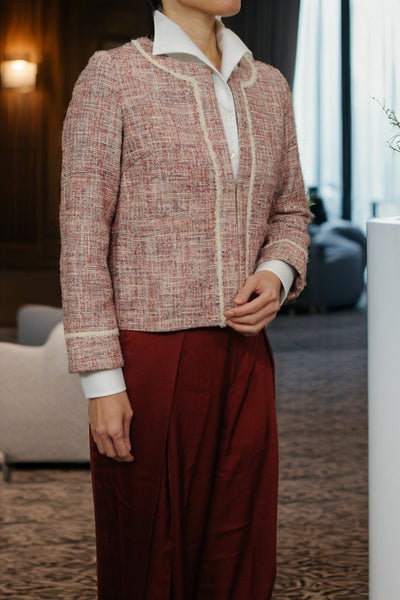 衿の曲線が気品と女性らしさを引き立てるイタリアンカラーです。