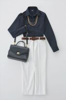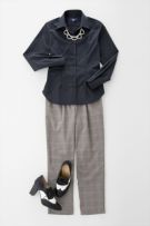 ウエストを絞った細身でスリムなメリハリのあるシルエット。フロントダーツとウエストラインが、シャープなスタイルをつくりだします。