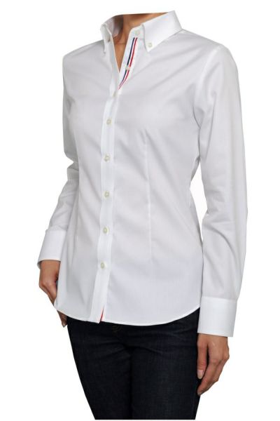 胸元のトリコロールが目を惹く、ボタンダウンのオックスフォードシャツ。