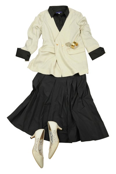 ホワイト系のボトムスでメリハリを効かせて。