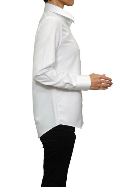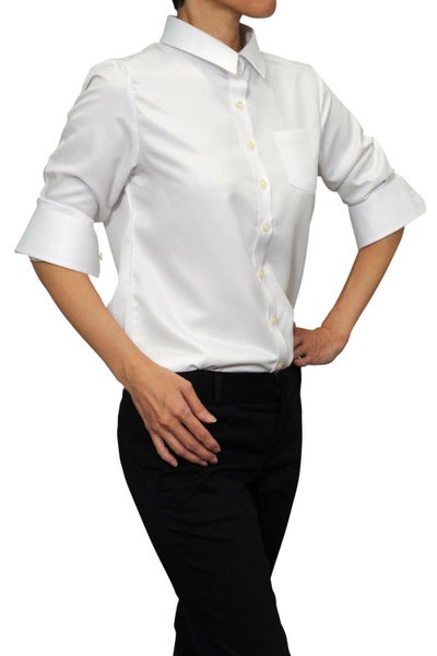 通常のボタン留プラス、カフスボタンも使えるコンバーチブルカフス。レディースシャツでも、カフスボタンの上品なアクセントとオシャレを楽しむことが出来ます。