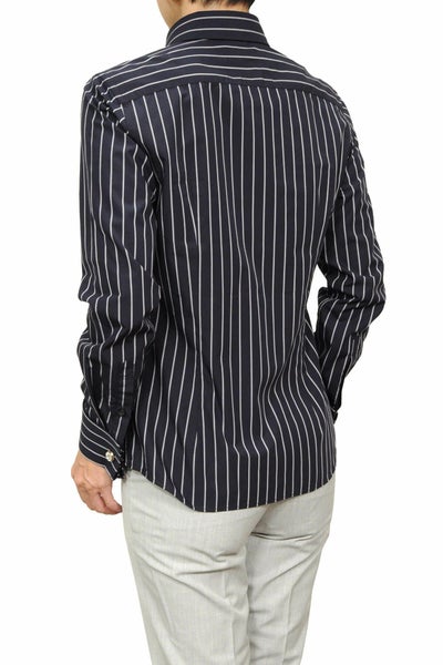 上質綿を使用した大人かっこいいストライプのダブルカフスシャツ。