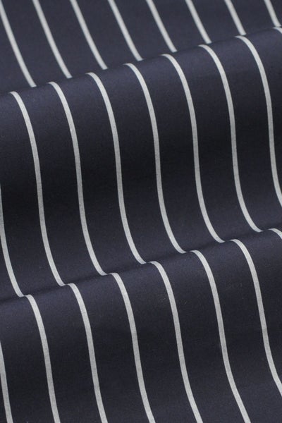 紺xグレ-の程良い間隔のストライプ柄が落ち着きある大人な印象に!