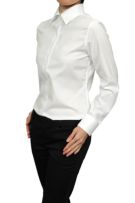 上質綿を使用した品の良いシンプルなレディース・ワイドカラーシャツ。