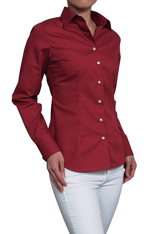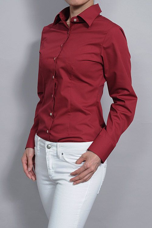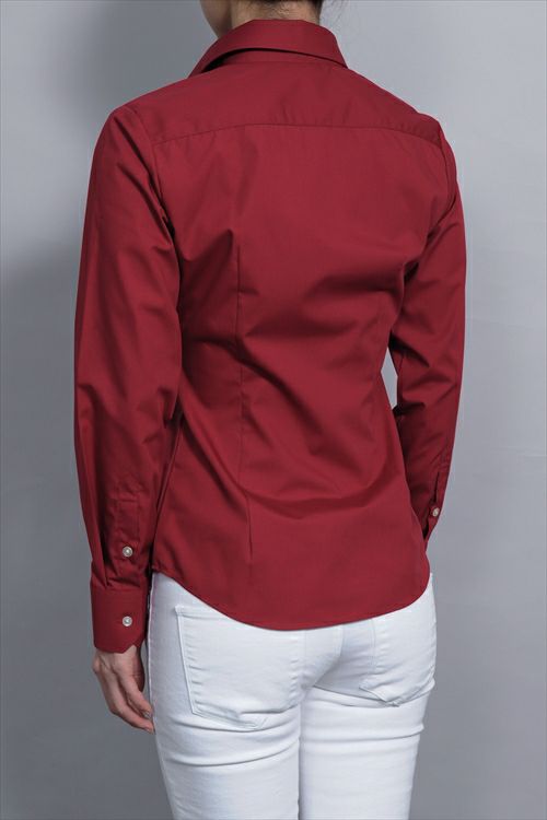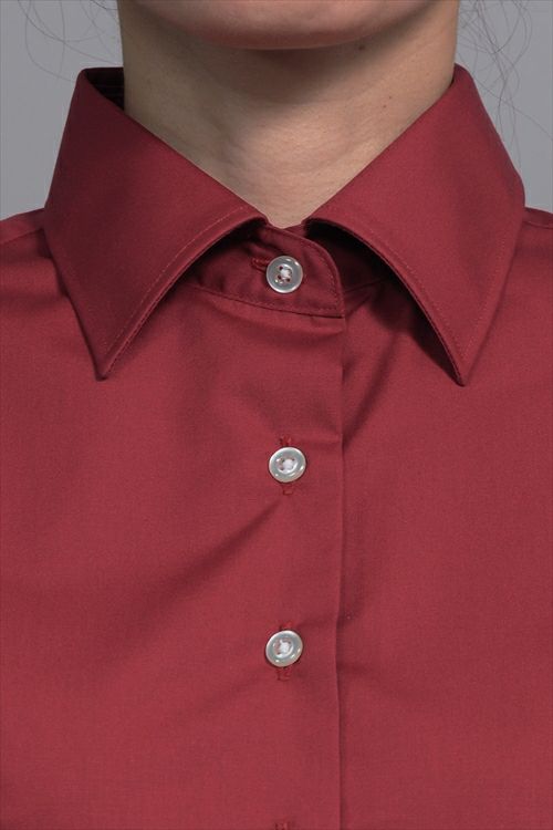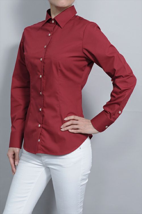 シンプル&ベーシックのスリムなスタイルに小ぶりな衿のワイドカラーレディースシャツ。