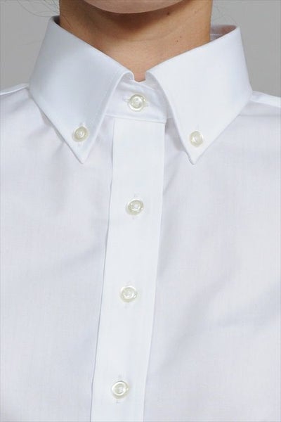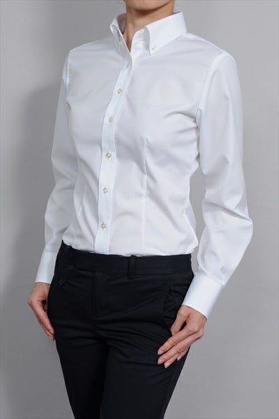 シャツ生地の定番、プレーンなブロード生地のスタンダードなレディースボタンダウンシャツ。